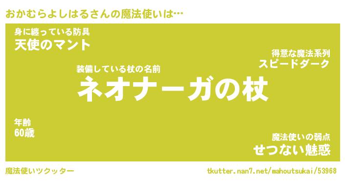 | 肩書あだ名 | 『おかむらよしはる御曹司』 |