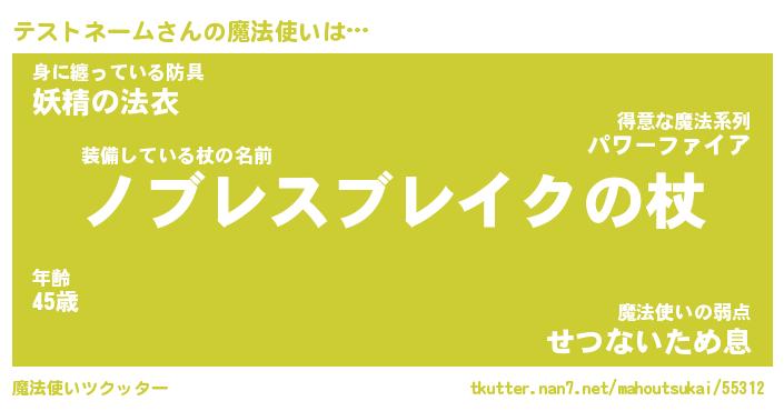 | 男性向けラノベタイトル風あだ名 | 『テストネームアートオンライン』 |