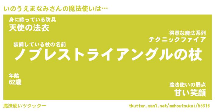 | 恥ずかしいあだ名 | 『プリティーいのうえまなみ』『いのちん』 |