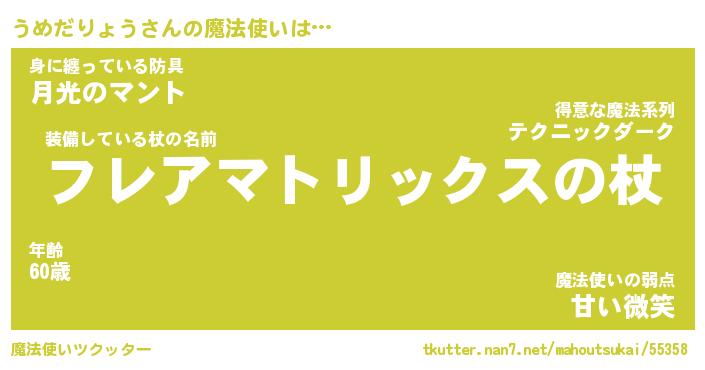 | ファンタジー風あだ名 | 『ウメフェル』『ファントムウメス』 |