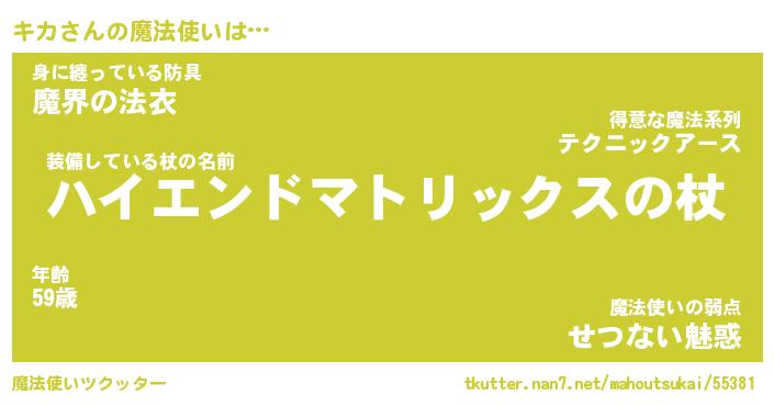 | ファンタジー風あだ名 | 『キカフェル』『エターナルキカー』 |
