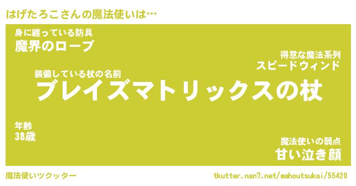 | ファンタジー風あだ名 | 『ハゲフェル』『エターナルハゲタロコー』 |