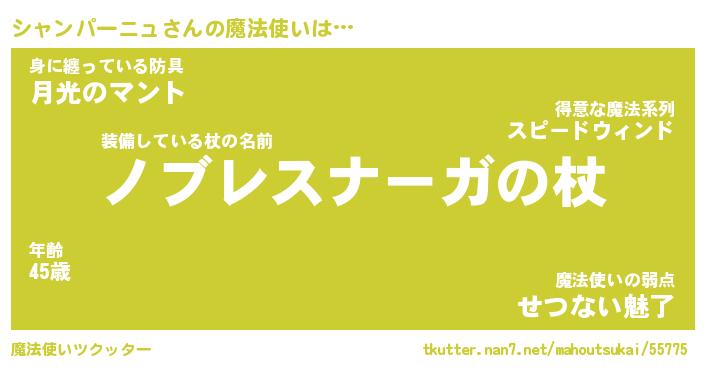 | ツイッター | シャンパーニュさんのツイッターID『dendenmushi_kun』 |