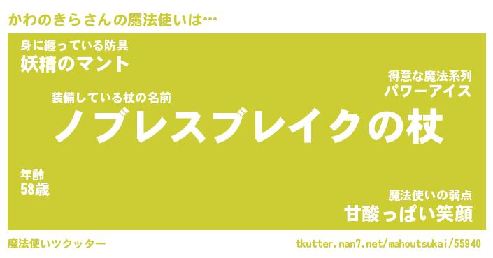 | 伝説のあだ名 | 『封印されし傭兵かわのきら』 |