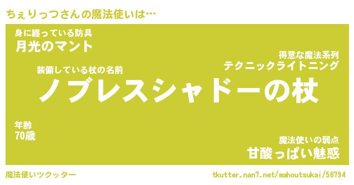 | 伝説のあだ名 | 『封印されし竜騎士ちぇりっつ』 |