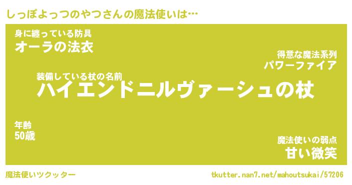 | 男性向けラノベタイトル風あだ名 | 『シッポヨッツノヤツアートオンライン』 |