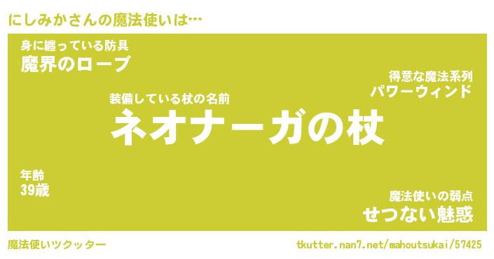 | ファンタジー風あだ名 | 『ニシフェル』『エターナルニシミカー』 |