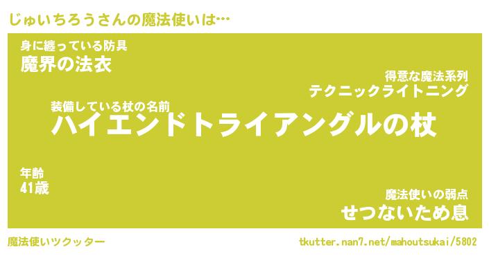 | 伝説のあだ名 | 『封印されし傭兵じゅいちろう』 |
