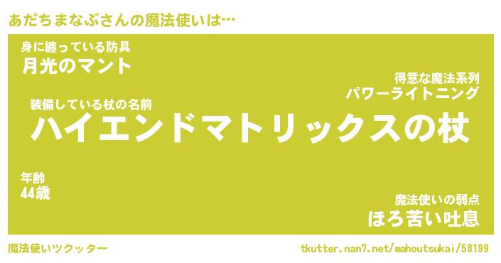 | 男性向けラノベタイトル風あだ名 | 『アダチマナブアートオンライン』 |