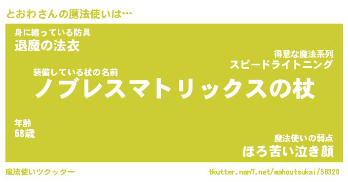 | ファンタジー風あだ名 | 『トオフェル』『エターナルトオワー』 |