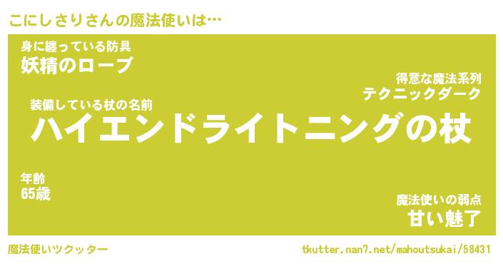 | ファンタジー風あだ名 | 『コニフェル』『エターナルコニシサリー』 |