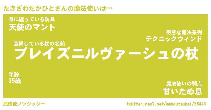 | 肩書あだ名 | 『たきざわたかひと御曹司』 |