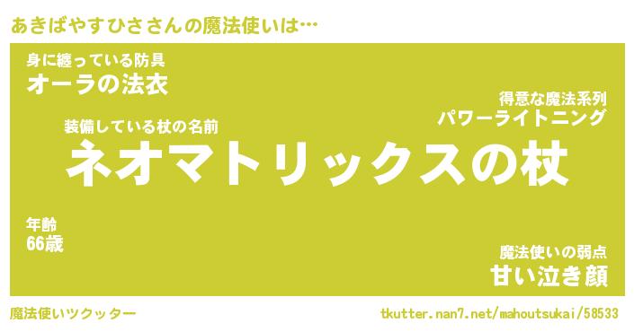 | 肩書あだ名 | 『あきばやすひさ社長』 |