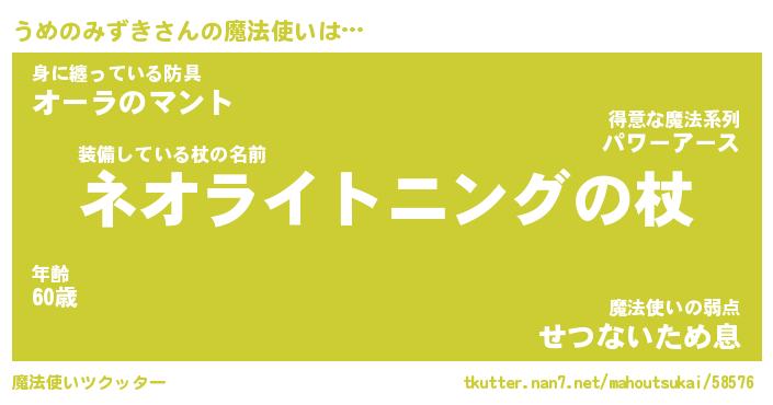 | ファンタジー風あだ名 | 『ウメフェル』『ファントムウメス』 |