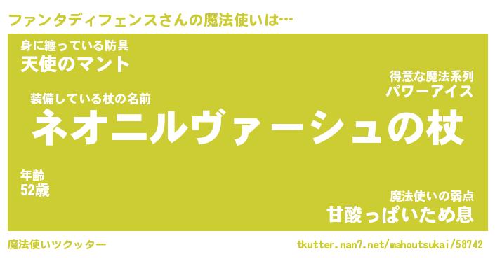 | 男性向けラノベタイトル風あだ名 | 『ファンタディフェンスの憂鬱』 |