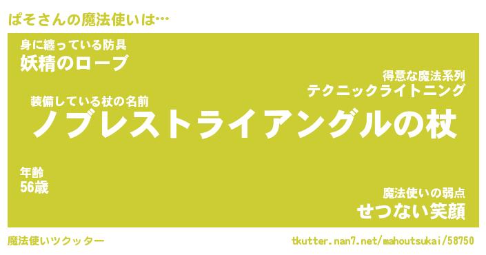 | ファンタジー風あだ名 | 『パソフェル』『エターナルパソー』 |