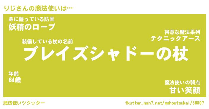 | 伝説のあだ名 | 『伝説の竜騎士りじ』『最古の格闘家りじ』 |