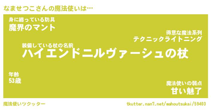 | 男性向けラノベタイトル風あだ名 | 『ナマセツコアートオンライン』 |
