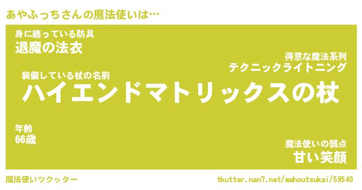 | 伝説のあだ名 | 『封印されし竜騎士あやふっち』 |