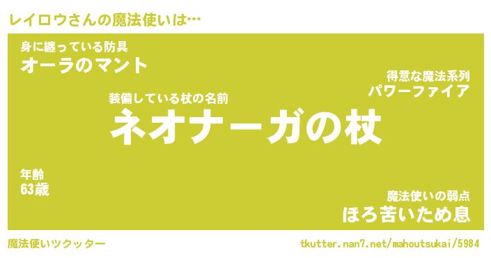| 伝説のあだ名 | 『不死鳥のスナイパーレイロウ』 |