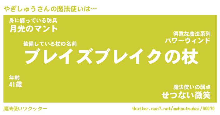 | 男性向けラノベタイトル風あだ名 | 『やぎしゅうの憂鬱』 |
