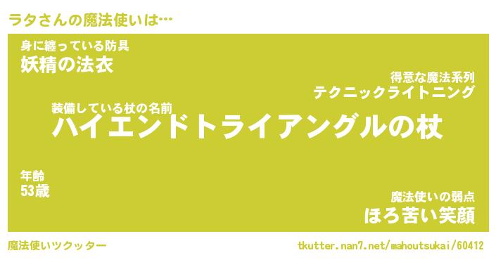 | ポケモン風あだ名 | 『ラタチュウ』『ラタダネ』『ヒラタ』 |