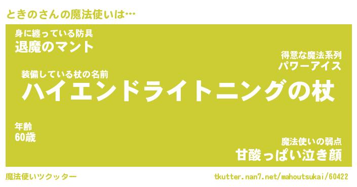 | ファンタジー風あだ名 | 『トキフェル』『エターナルトキノー』 |