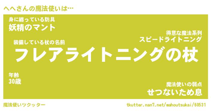 | 胡散臭い通販商品みたいなあだ名 | 『必ず成功する水晶球…その名も「へへ」』 |