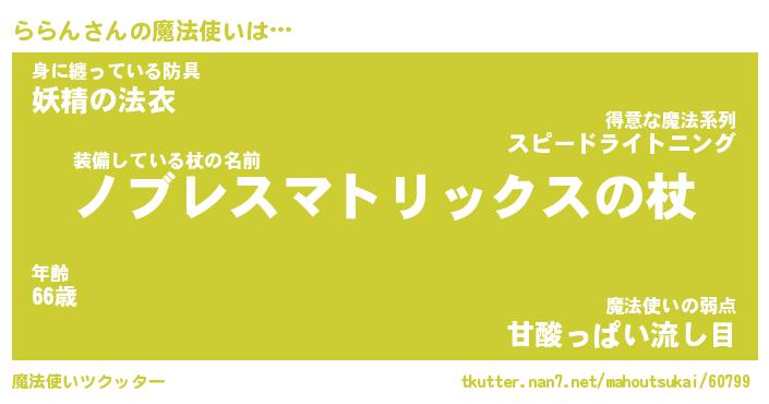 | 男性向けラノベタイトル風あだ名 | 『ラランアートオンライン』 |