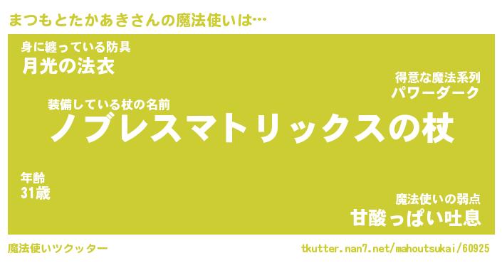| ツイッター | まつもとたかあきさんのツイッターID『namakemono_man』 |