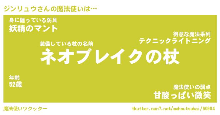 | ファンタジー風あだ名 | 『ジンフェル』『エターナルジンリュウー』 |