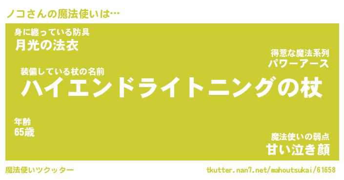 | ヒーロー風カッコイイあだ名 | 『スーパーノコ』『ウルトラノコマン』 |