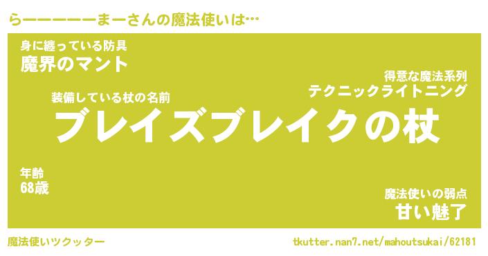 | ファンタジー風あだ名 | 『ラーフェル』『ファントムラース』 |