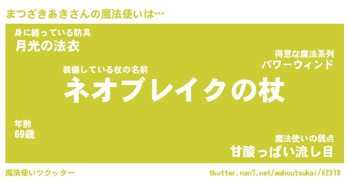 | 男性向けラノベタイトル風あだ名 | 『まつざきあきの憂鬱』 |