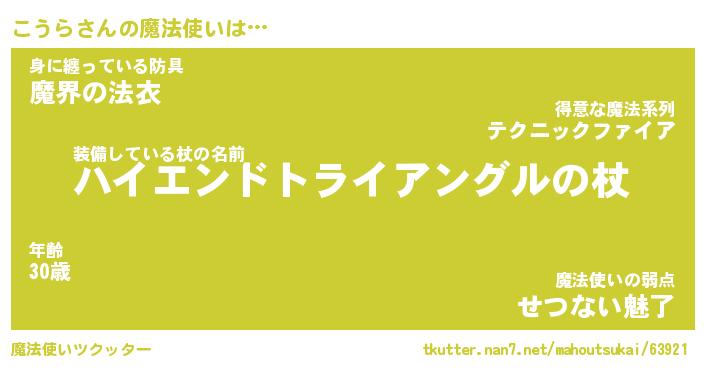 | ファンタジー風あだ名 | 『コウフェル』『エターナルコウラー』 |