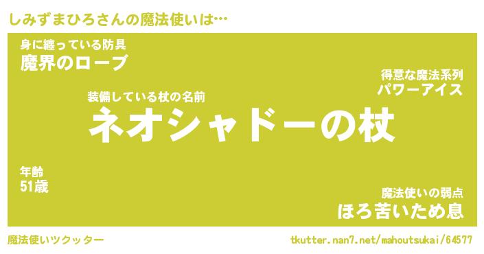 | ヒーロー風カッコイイあだ名 | 『スーパーシミズマヒロ』『暗黒騎士シミ』 |