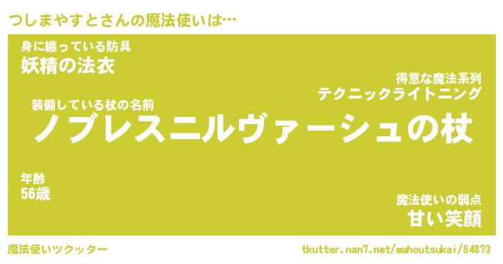 | ヒーロー風カッコイイあだ名 | 『スーパーツシマヤスト』『天弓騎士ツシ』 |