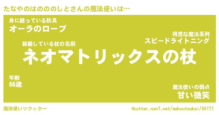 | 男性向けラノベタイトル風あだ名 | 『たなやのはのののしとの憂鬱』 |