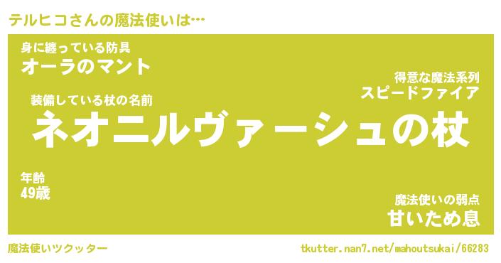 | 胡散臭い通販商品みたいなあだ名 | 『モテモテ間違いなし霊験あらたかなお札…その名も「テルヒコ」』 |
