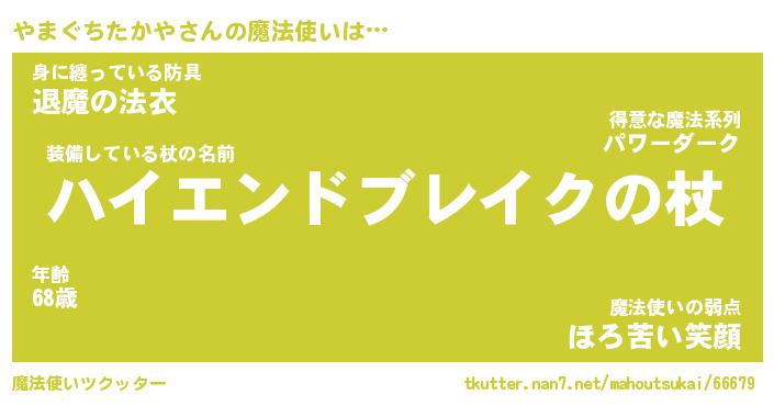| 伝説のあだ名 | 『封印されし傭兵やまぐちたかや』 |