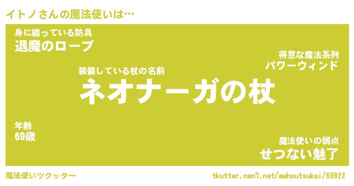 | ファンタジー風あだ名 | 『イトフェル』『エターナルイトノー』 |