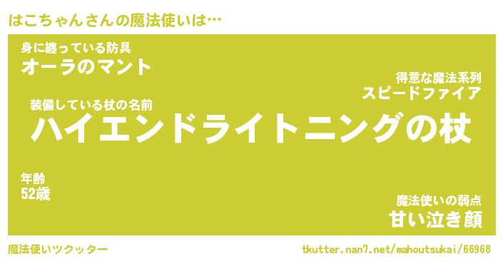 | ヒーロー風カッコイイあだ名 | 『スーパーハコチャン』『幻影騎士ハコ』 |