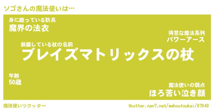 | ファンタジー風あだ名 | 『ソゴフェル』『エターナルソゴー』 |