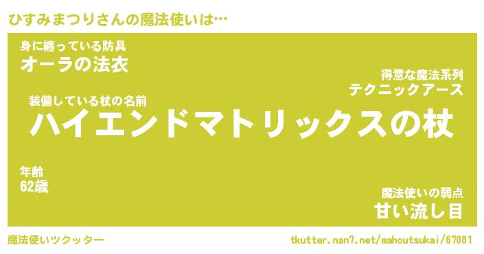 | 男性向けラノベタイトル風あだ名 | 『ヒスミマツリアートオンライン』 |