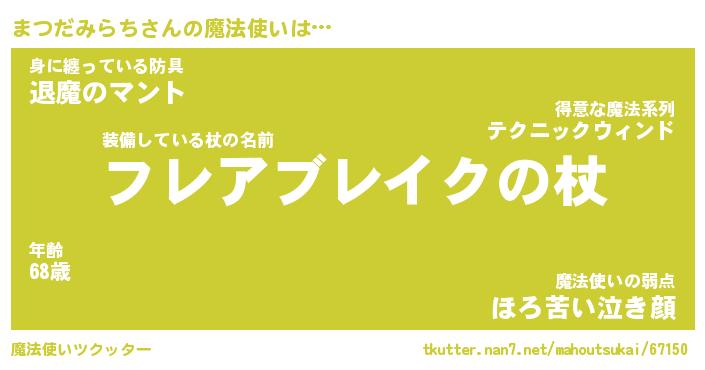 | ヒーロー風カッコイイあだ名 | 『スーパーマツダミラチ』『魔戒騎士マツ』 |
