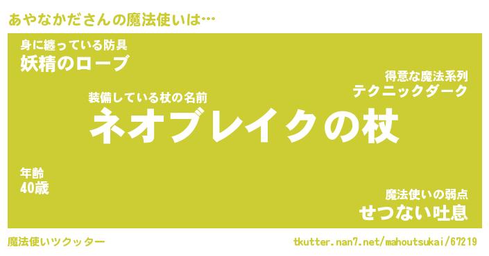 | ファンタジー風あだ名 | 『アヤフェル』『エターナルアヤナカダー』 |