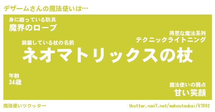 | ヒーロー風カッコイイあだ名 | 『スーパーデザーム』『幻影騎士デザ』 |