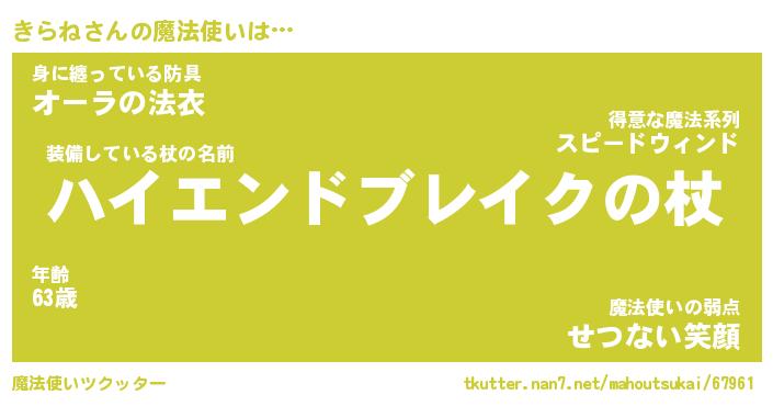 | 伝説のあだ名 | 『封印されし傭兵きらね』 |