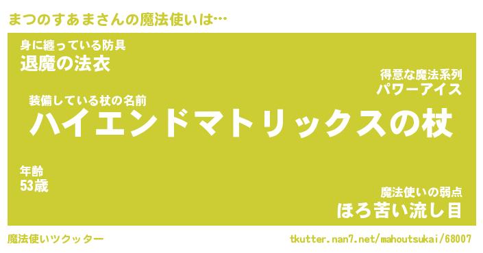 | ヒーロー風カッコイイあだ名 | 『スーパーマツノスアマ』『天弓騎士マツ』 |