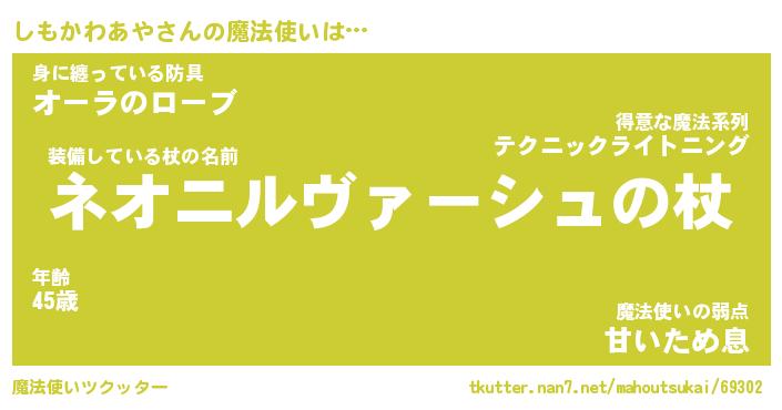 | 肩書あだ名 | 『しもかわあや御曹司』 |
